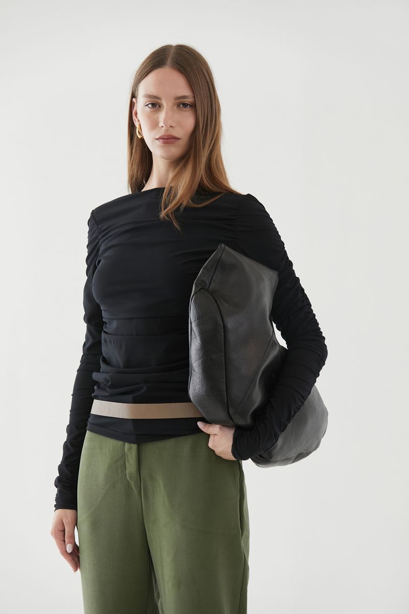 Top confeccionado en micro italiana con spx. Detalle frunce en mangas y cuerpo.