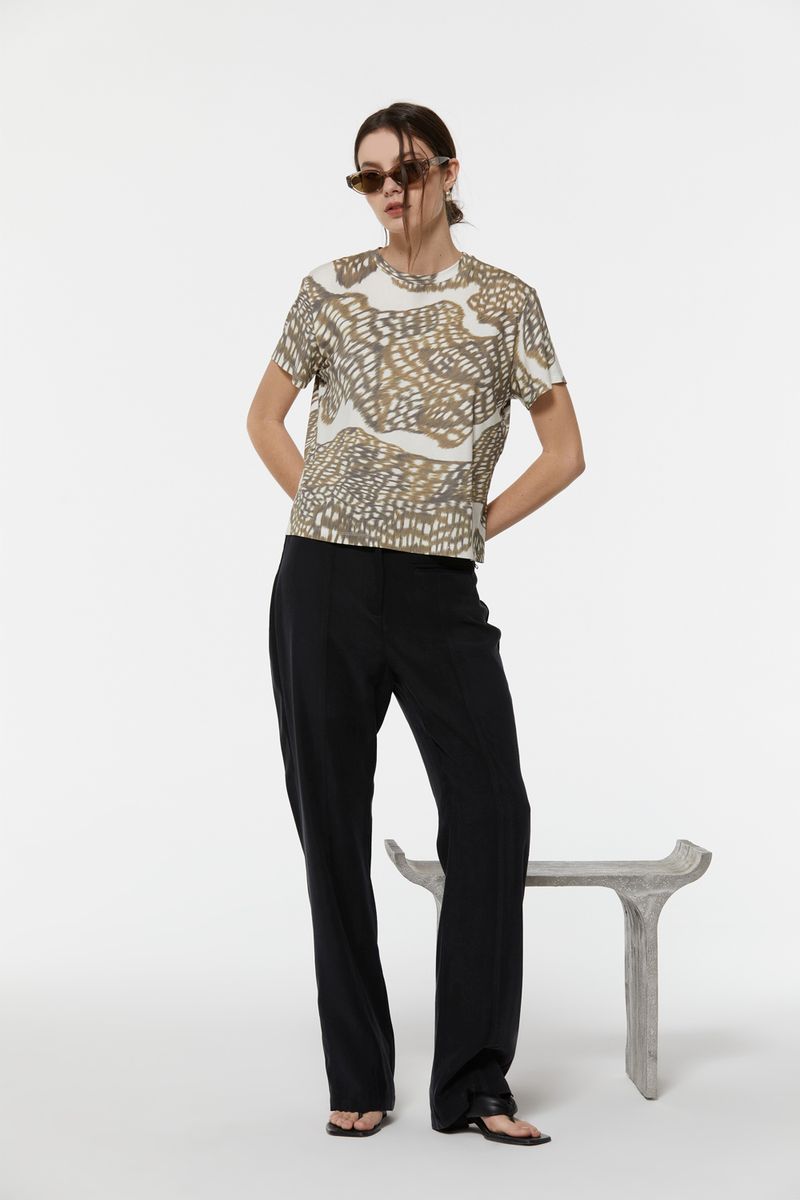 Pantalón recto confeccionado en twill sastrero. Detalle de recortes pespunteados y doble bolsillo en delantero. En dorso, recortes verticales y bolsillos ojal. La modelo mide 1,74 cm y usa talle 40.
