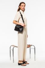 Monoprenda mangas cortas con cuello camisero, cartera escondida con botones soft touch, bolsillo vivo y cintura de elástico partido que permite flexibilidad presenta recortes verticales que recorren la prenda y bolsillo lateral delantero inferior aplicado que nace del recorte largo hasta el piso la modelo mide 1.72 cm. Usa talle 38.