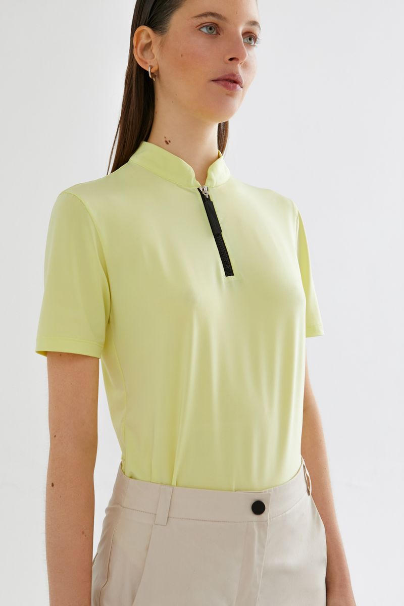 Top confeccionado en microfibra importada de brasil. Silueta adherente. Cuello mao con cierre plastico. Detalle de bordador en centro espalda.