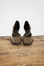 Detalle de punta cuadrada y tira que cruza el empeine.